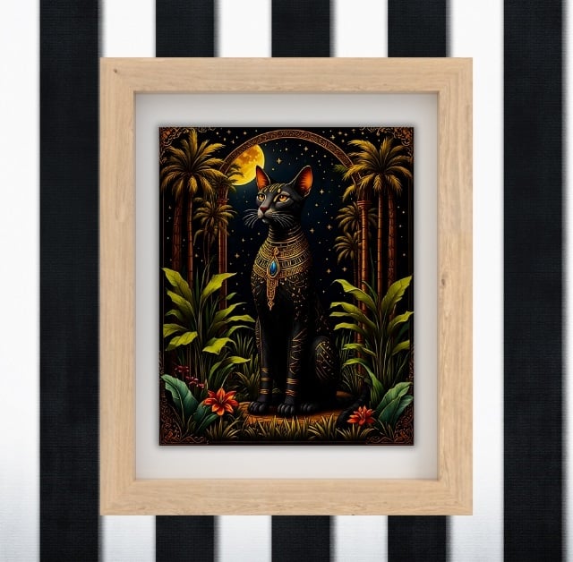 Bastet Art Print: Egyptian Black Cat Goddess, Tropical Night