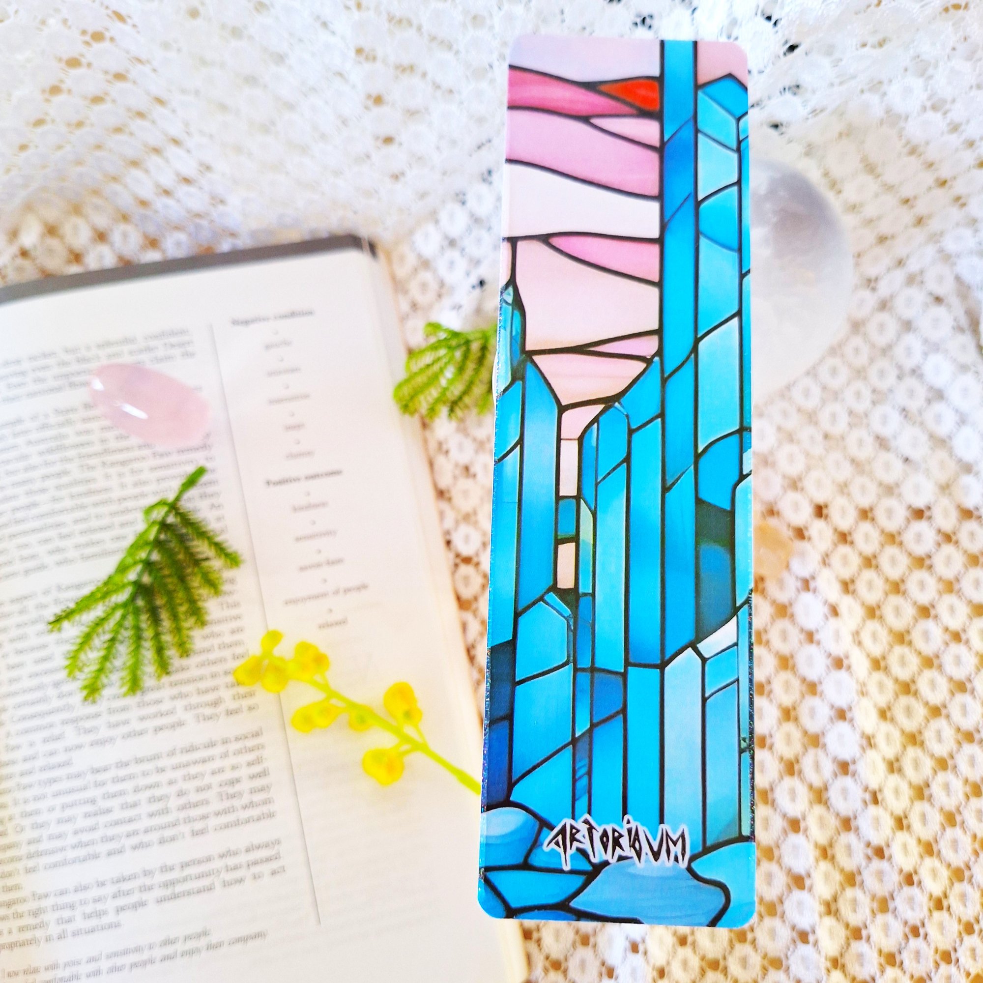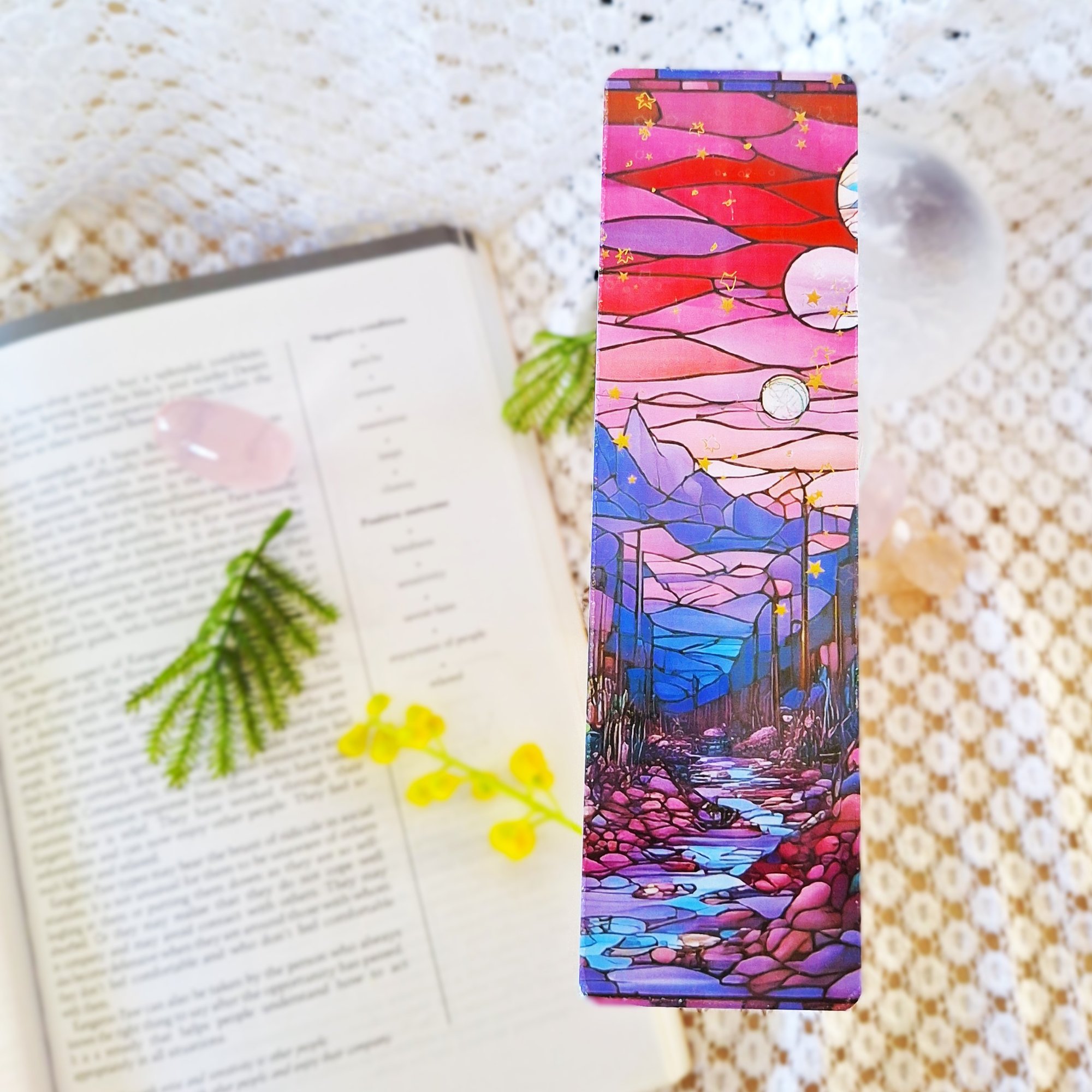 Bookmarks crystal mountains with hand foil accents pinks and blues large laminated