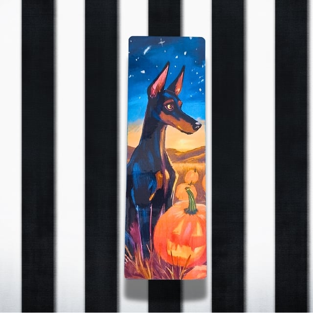 Bookmarks Halloween 2025 Dog - Doberman and pumpkin