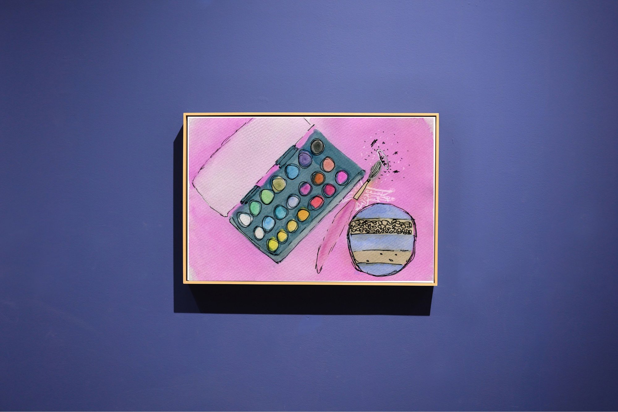 A fun and very pink doodle of the watercolor pan and paint brush I had sitting in front of me with a Christmas decoration I pulled off the tree for a little symmetry.
