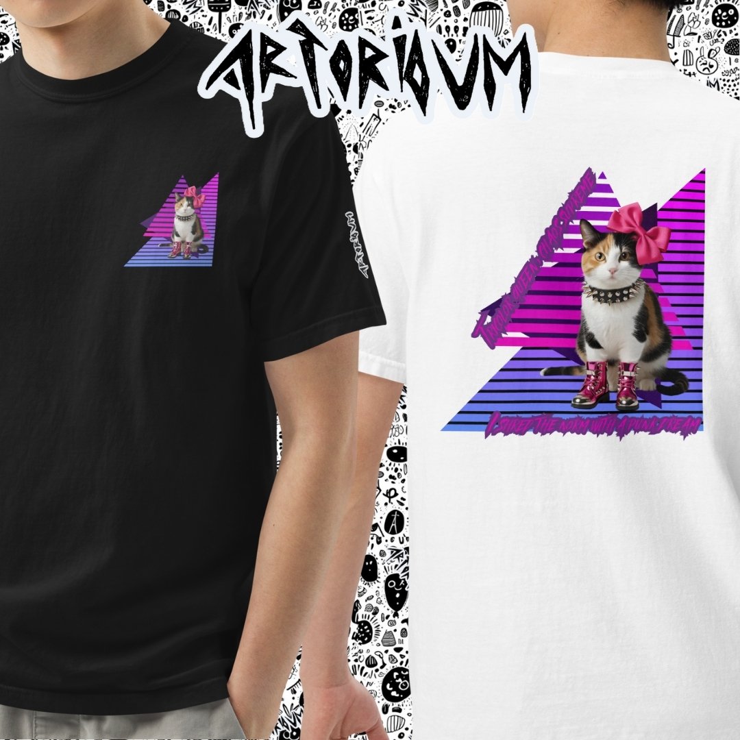 Tortoiseshell Cat t shirts with a punk rock theme:
